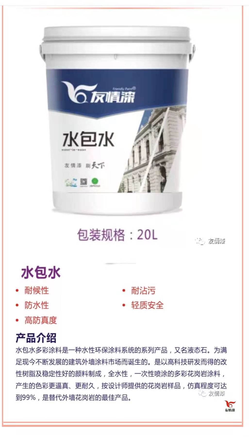 隨著生活水平提高,人們對(duì)居住環(huán)境的要求也隨之提高。水包水多彩涂料作為一種低碳環(huán)保高效能的外墻裝飾材料,具有超低污染性能,更舒適的手感,極大提高了墻面的平整度及流暢度,能長久保持墻面顏色均勻、色澤亮麗等諸多特點(diǎn),正受到廣大人們的歡迎。