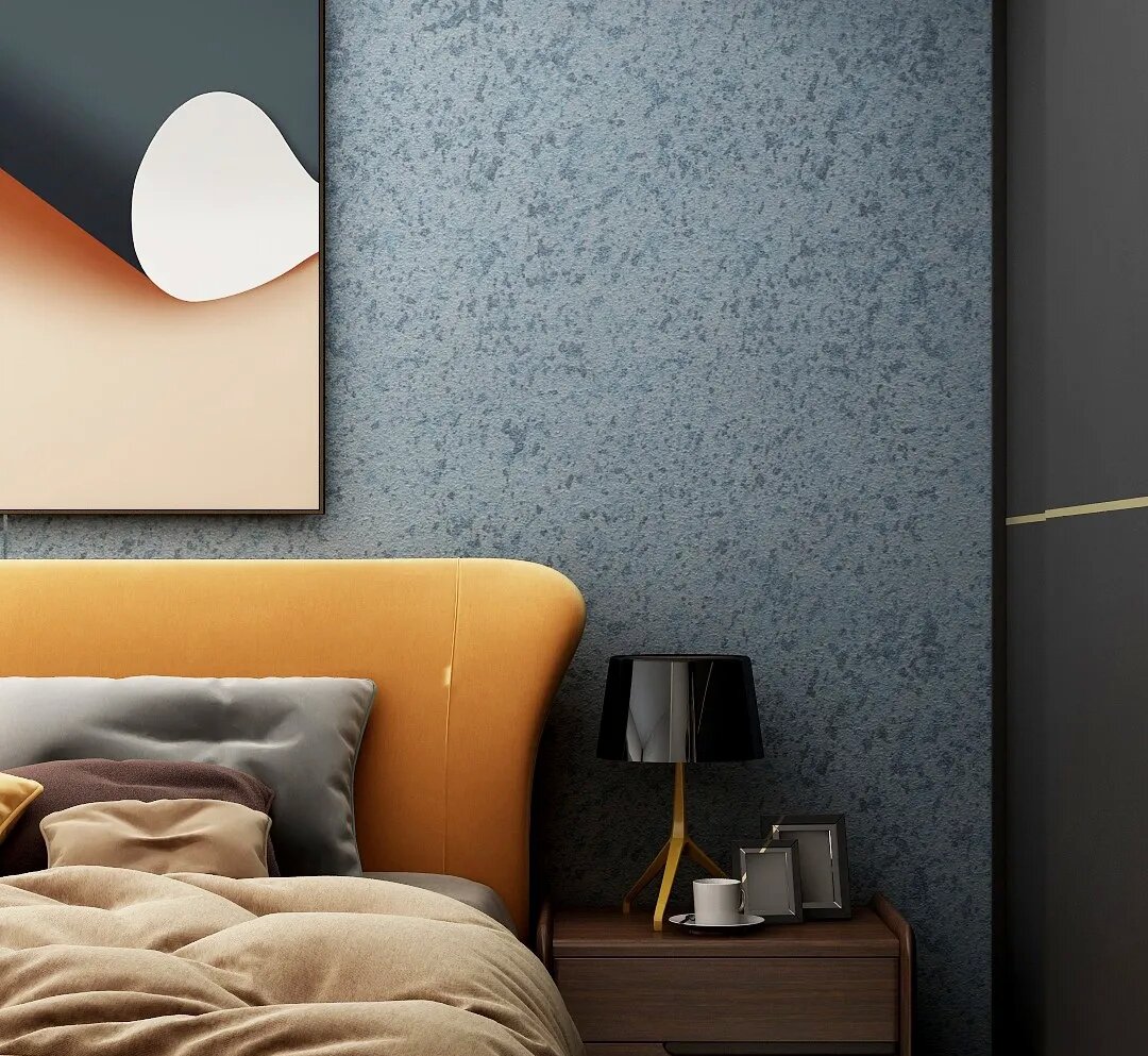 相比單調的乳膠漆藝術漆更具紋理和光澤感,不同種類的藝術漆可以帶給墻面不同的紋理和光澤感。例如類似雞蛋表面的蛋殼光藝術漆:呈現不同紋路的肌理漆:細膩光滑、有珍珠光澤的天鵝絨藝術漆:猶如駿馬奔馳過的蹄印的馬來漆等。適配不同裝修風格以往設計想要出風格,墻面得搭配大理石、木飾面、護墻板等不同材料,現在只需要搭配合適的藝術漆一樣出彩。天鵝絨+現代輕奢。天鵝絨柔和的光澤和絲滑的質感,搭配曲面的電視背景墻,如同綢緞鋪開一般,盡顯現代輕奢。肌理漆+侘寂風。肌理漆自帶原始的粗糲感,與質樸、極簡的侘寂風相得益彰。藍色系列珍珠絨+美式復古。適合想用深色漆粉刷墻面但又怕變暗的朋友,藝術涂料的光澤會隨著光線折射的不同而變化,帶來不同層次的光感效果。